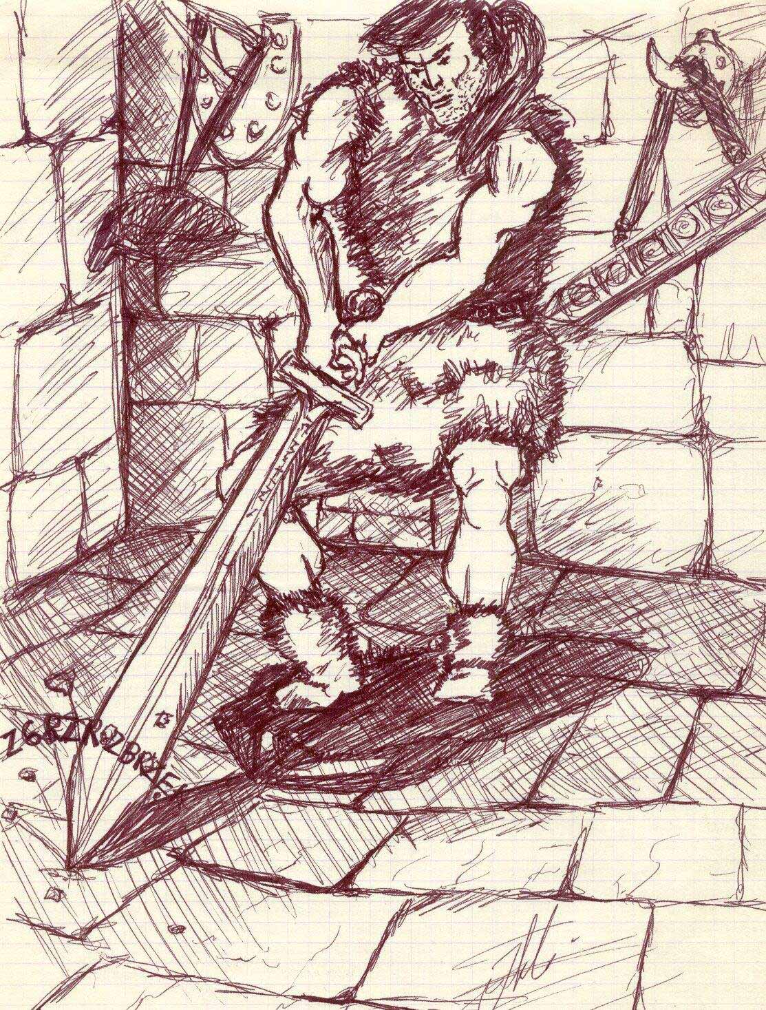 Nie to nie jest główny bohater, to raczej podstarzały Arnold, czy raczej Conan, wyłysiały lekko, z brzuszyskiem rozdętym od hektolitrów wypijanego piwska (bezalkoholowego oczywiście), z czasem tę postać zastąpił Alaryk, może nie tak "szeroki", ale również dosyć mocno zbudowany, jednak baaardzo zmęczony już życiem i oczywiście dużo starszy.