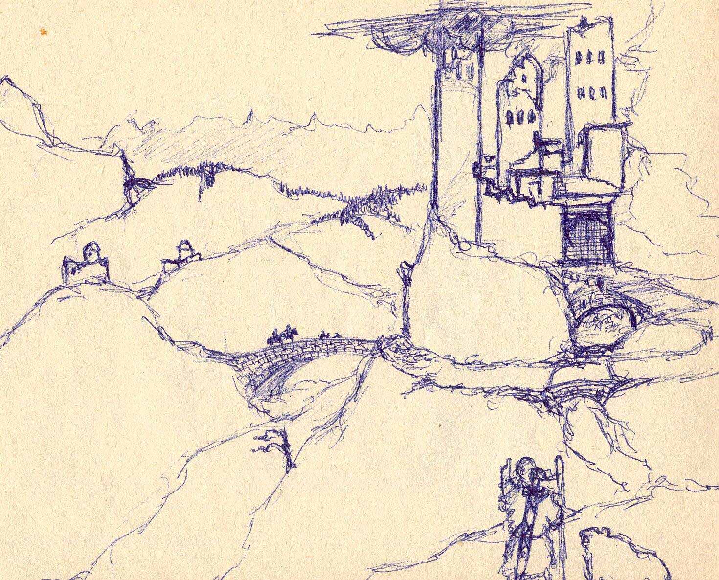 Z czasem narysował bym to inaczej, wciśnięte między niedostępne szczyty, przylepione do jakiegoś z nich, zwalona wieża, zrujnowane blanki i cień Welesa spacerującego po nich
